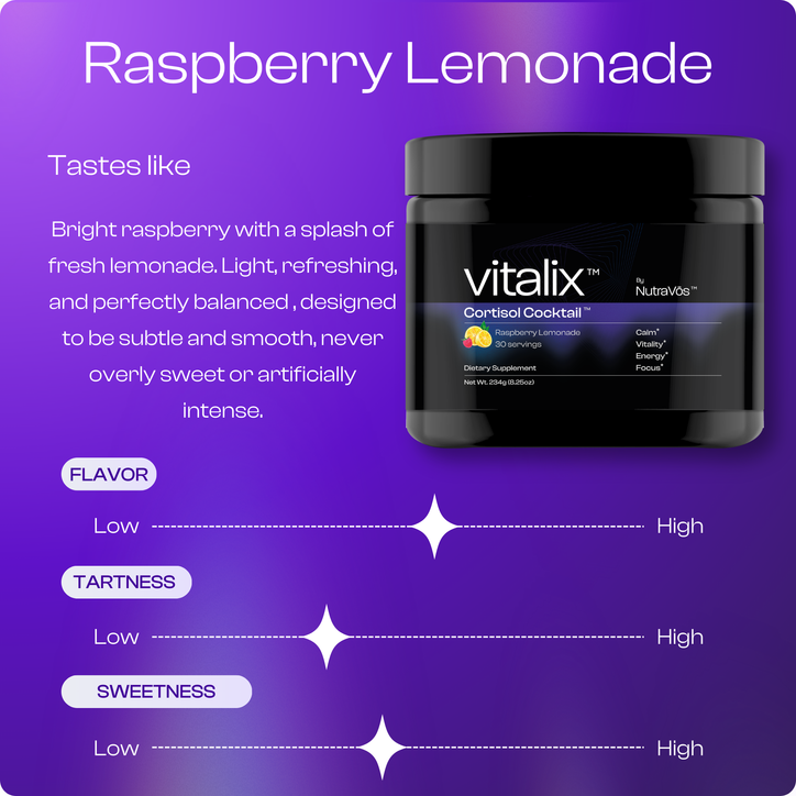 Amazon CustomerI’ve tried a lot of cortisol and stress supplements, and Vitalix truly stands out. The clinically backed ingredients—KSM-66 ashwagandha, magnesium glycinate, L-theanine, Vitamin C, and potassium—make a real difference. It mixes easily, tastes clean, and helps me feel noticeably more balanced during high-stress, low-energy moments. Clean formula, no side effects—just a calmer, more even me.